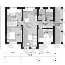 Квартира обладает практичной планировкой: жилая площадь составляет 19 квадратных метров, а кухня 12.5 квадратных метров, предоставляя достаточно места как для отдыха, так и для приготовления пищи.