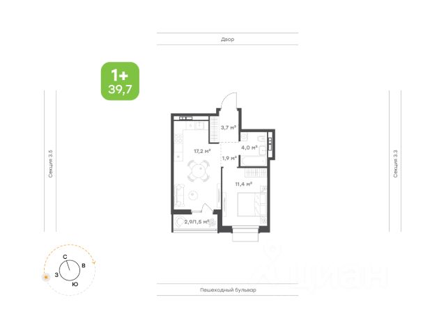 Эргономичная квартира евроформата с максимально функциональной площадью Много света, благодаря ориентации на юго-запад Просторная кухня-гостиная с выходом на балкон Уютная спальня с возможностью размещения вместительного шкафа Ванная правильной формы без шахты инженерных коммуникаций внутри помещения Ниша под шкаф в прихожей Высота потолка 2,7 м Улучшенная предчистовая отделка