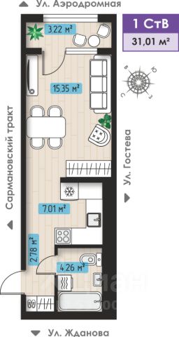 Продаётся 1-комнатная квартира в сданном доме (Дом 5), срок сдачи: III-кв. 2025, общей площадью 31.01 кв.м., на 1 этаже. Жилой комплекс "Авиатор" - это комплекс из девяти трехэтажных домов с тремя подъездами и собственным двором без машин с детской площадкой. ЖК "Авиатор" расположен на улице Аэродромной в районе Замелекесье Набережных Челнов. Теперь не придется выбирать между удобствами городской жизни и комфортом жизни в спокойном месте. Высота домов ЖК Авиатор составляет 3 этажа, что не превышает высоту деревьев вокруг. Отсутствие высотного окружения открывает небесный простор, ничего не стесняет жителей. Протяженный тротуар с велодорожкой позволит с удовольствием прогуливаться вдоль всего комплекса, наслаждаясь спокойствием и уютом района. Также нужно отметить, что жилой комплекс расположен в непосредственной близости к реке Мелекеска, где можно с удовольствием проводить летние деньки или приходить сюда на рыбалку. Ландшафтный дизайн и озеленение делают жилой комплекс еще привлекательнее. Небольшое количество квартир, уютные дворы у каждого дома создают приватную атмосферу что позволит дружить и переходить "на ты" с соседями. Собственные дворики, которые позволяют детям уже с самого раннего возраста наслаждаться играми на детских площадках, а родителям быть спокойными за детишек. Кроме этого, для такого количества квартир не нужны огромные паркинги, всем соседям будет достаточно парковочных мест у дома.