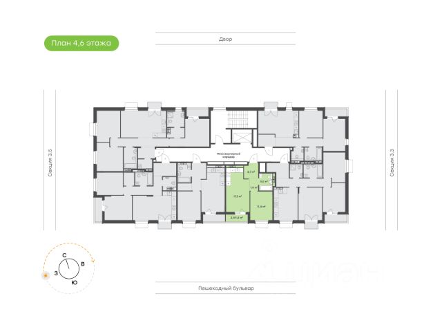 Светлая квартира, окна выходят на юго-западную сторону Компактная прихожая с нишей для хранения вещей Эргономичная спальня с местом под шкаф. Французский балкон на ряде этажей Просторная функциональная кухня-гостиная Вид на центральный бульвар Высота потолка 2,7 м Улучшенная предчистовая отделка