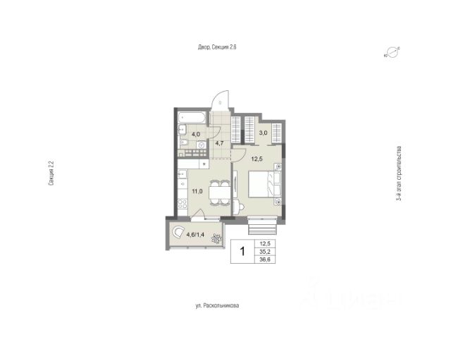 Уютная квартира для небольшой семьи Функциональная кухня Просторная спальня с возможностью выделения гардеробной и рабочей зоны, а также выходом на лоджию Прихожая с нишей под шкаф Вместительная ванная Высота потолков 2,7м Улучшенная предчистовая отделка