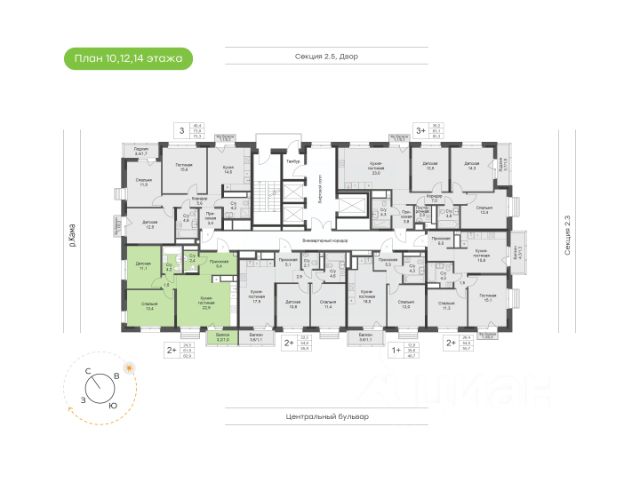 • ✓ В базе Циан 24 2-комнатных квартир на 12 этаже в Набережных Челнах