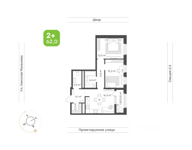 Кондиционер, кухонный гарнитур, два вместительных встроенных шкафа, диван, кровать с матрасом, стол письменный, стиральная машина, холодильник остается для будущих владельцев.