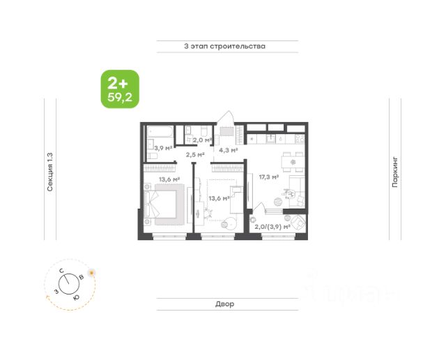Окна на 2 стороны света Классический формат с отдельной кухней и 2 комнатами Гостиная с выходом на лоджию Детская правильной формы Ванная комната и дополнительный санузел для комфорта семьи Высота потолка 2,73 м Улучшенная предчистовая отделка