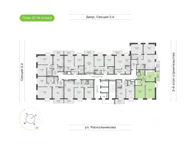 Функциональная квартира на 2 стороны света Классический формат с раздельной кухней и гсотиной Ниша для организации мест хранения в прихожей Просторная кухня с выходом на балкон Эргономичная гостиная с возможностью размещения рабочей зоны и дополнительных мест хранения Уютная спальня с французским балконом (на ряде этажей) Вместительная ванная и дополнительный санузел, который может быть трансформирован в постирочную Высота потолка 2,7 м Улучшенная предчистовая отделка