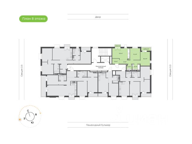 Окна на 3 стороны света Увеличенная кухня-гостиная с выходом на лоджию Просторная мастер-спальня со своей гардеробной и санузлом Спальня и детская находятся в разных концах квартиры Высота потолка 2,73 м Улучшенная предчистовая отделка