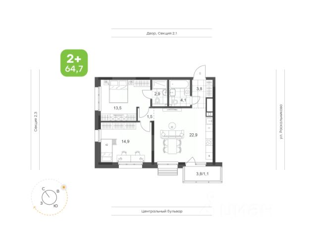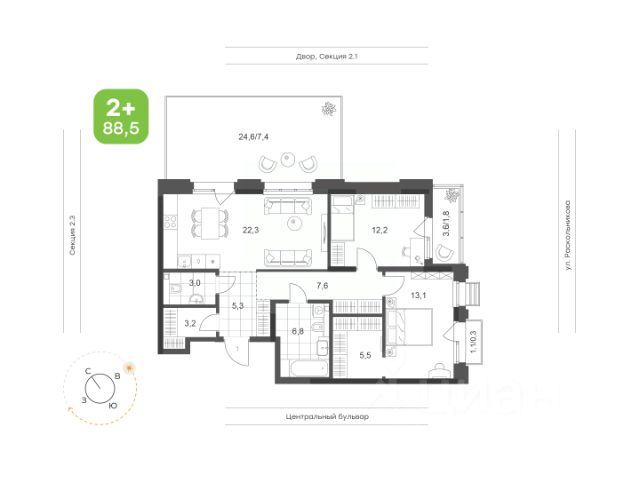 Новый динамично развивающийся район без крупных трасс и промышленных предприятий.