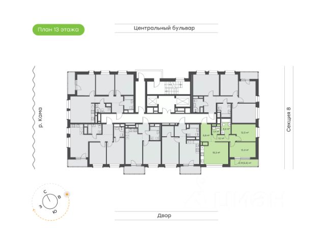 Представляем Вашему вниманию 2 комнатную квартиру в ЖК "КАМА", в центральной части города.