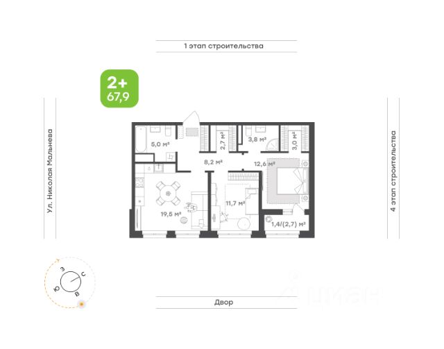 Светлая квартира, ориентированная на юго-запад Классический формат с раздельной кухней и гостиной Гостиная с выходом на балкон Эргономичная кухня Уютная спальня правильной формы Выделенная гардеробная Увеличенная ванная правильной формы без шахты инженерных коммуникаций внутри помещения Ниша для организации мест хранения в прихожей Высота потолка 2,7 м Улучшенная предчистовая отделка 5 квартир на этаже