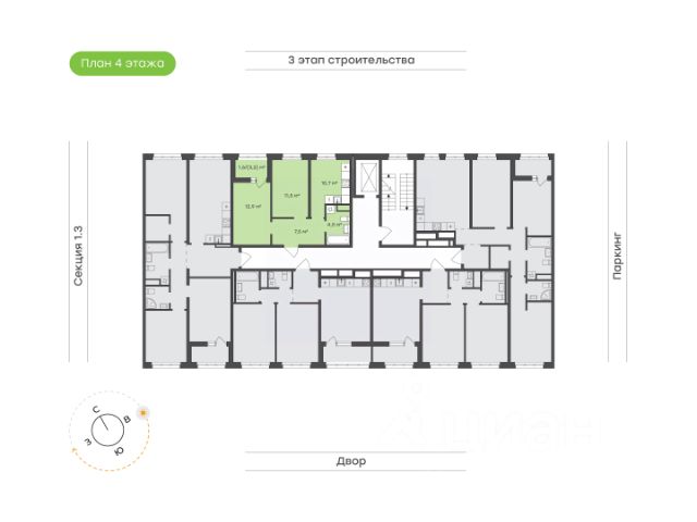 Светлая функциональная квартира, ориентированная на юго-запад Увеличенная кухня-гостиная с выходом на балкон Удобная мастер-спальня с собственным санузлом Уютная эргономичная детская Ванная с нишей под стиральную машину Высота потолка 2,7 м Улучшенная предчистовая отделка 5 квартир на этаже