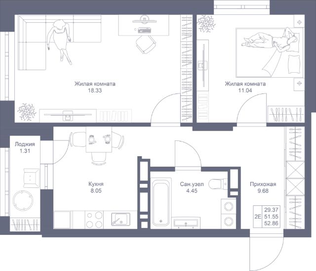 Продаётся 2-комнатная квартира в сданном доме (Дом 2), срок сдачи: IV-кв. 2024, общей площадью 52.31 кв.м., на 1 этаже. Новый жилой комплекс "Виноградный" от застройщика "ЖСК Комфортное жилье" расположен по адресу Набережные Челны, 66-й мкр, Виноградная улица.