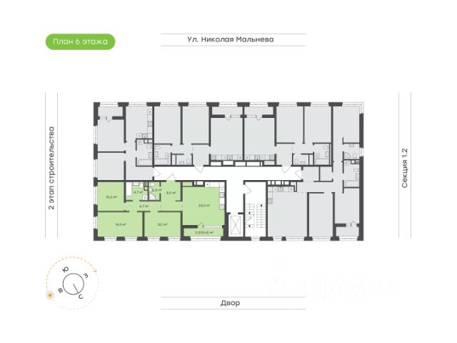 Светлая квартира с видом во двор Эргономичная спальня и детские правильной формы Просторная кухня-гостиная с удобным зонированием и выходом на лоджию Ванная комната и дополнительный санузел для комфорта семьи Прихожая с возможностью установки шкафа Высота потолка 2,73 м Улучшенная предчистовая отделка 5 квартир на этаже