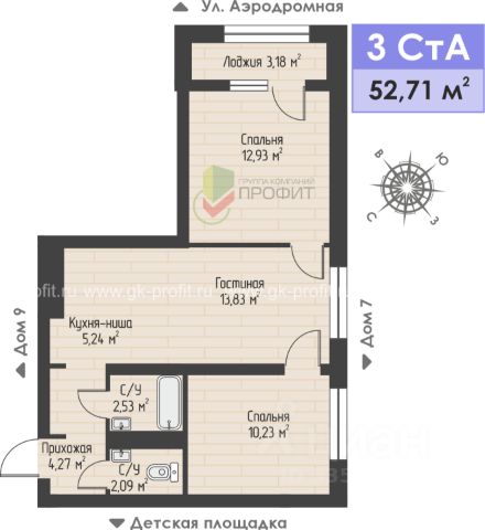 Продаётся 3-комнатная квартира в строящемся доме (Дом 8), срок сдачи: II-кв. 2026, общей площадью 52.71 кв.м., на 4 этаже. Жилой комплекс "Авиатор" - это комплекс из девяти трехэтажных домов с тремя подъездами и собственным двором без машин с детской площадкой. ЖК "Авиатор" расположен на улице Аэродромной в районе Замелекесье Набережных Челнов. Теперь не придется выбирать между удобствами городской жизни и комфортом жизни в спокойном месте. Высота домов ЖК Авиатор составляет 3 этажа, что не превышает высоту деревьев вокруг. Отсутствие высотного окружения открывает небесный простор, ничего не стесняет жителей. Протяженный тротуар с велодорожкой позволит с удовольствием прогуливаться вдоль всего комплекса, наслаждаясь спокойствием и уютом района. Также нужно отметить, что жилой комплекс расположен в непосредственной близости к реке Мелекеска, где можно с удовольствием проводить летние деньки или приходить сюда на рыбалку. Ландшафтный дизайн и озеленение делают жилой комплекс еще привлекательнее. Небольшое количество квартир, уютные дворы у каждого дома создают приватную атмосферу что позволит дружить и переходить "на ты" с соседями. Собственные дворики, которые позволяют детям уже с самого раннего возраста наслаждаться играми на детских площадках, а родителям быть спокойными за детишек. Кроме этого, для такого количества квартир не нужны огромные паркинги, всем соседям будет достаточно парковочных мест у дома.