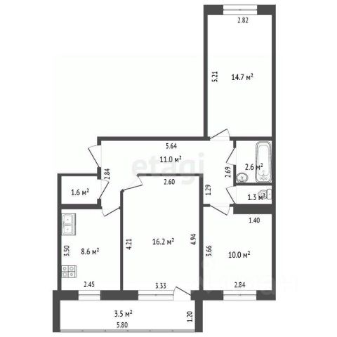• ✅ Минимальная площадь: 56,3 м²