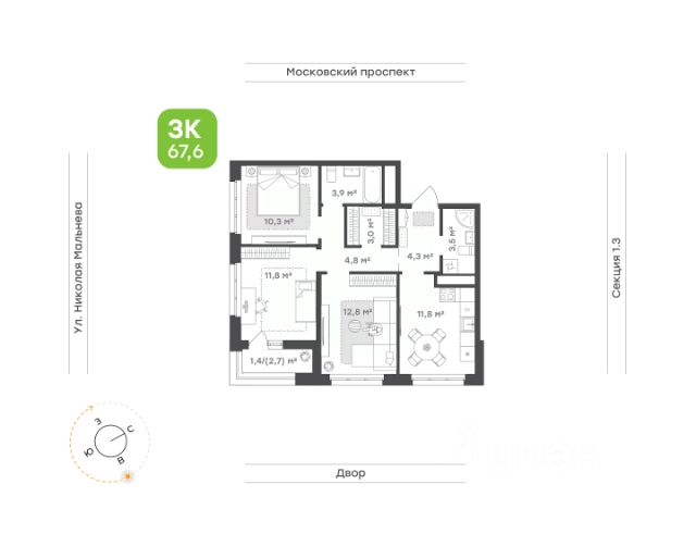 Квартира классического формата на 2 стороны Просторная кухня для любителей кулинарных экспериментов Уютная гостиная для теплых семейных вечеров Родительская спальня с выходом на открытую лоджию Функциональная детская Два санузла для комфорта всей семьи Французский балкон (на ряде этажей) Солнечная сторона Высота потолков 3,03 м Улучшенная предчистовая отделка