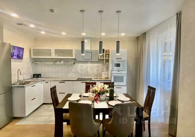 Дизайнерский евроремонт, кухня со встроенной техникой(посудомойка,холодильник,духовой шкаф, варочная панель),каменная столешница,теплые полы на кухне, в холле, ванной и санузле(2санузла),камин с подогревом, 2лоджии.Почти вся мебель и техника остаётся.Видеодомофон,окна выходят на парк Победы,на этаже всего 3квартиры,эта квартира находится с боку без соседей.