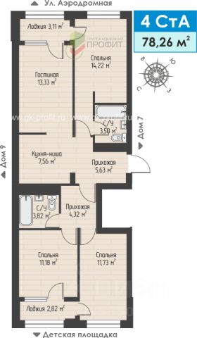 Продаётся 4-комнатная квартира в строящемся доме (Дом 8), срок сдачи: II-кв. 2026, общей площадью 80.16 кв.м., на 1 этаже. Жилой комплекс "Авиатор" - это комплекс из девяти трехэтажных домов с тремя подъездами и собственным двором без машин с детской площадкой. ЖК "Авиатор" расположен на улице Аэродромной в районе Замелекесье Набережных Челнов. Теперь не придется выбирать между удобствами городской жизни и комфортом жизни в спокойном месте. Высота домов ЖК Авиатор составляет 3 этажа, что не превышает высоту деревьев вокруг. Отсутствие высотного окружения открывает небесный простор, ничего не стесняет жителей. Протяженный тротуар с велодорожкой позволит с удовольствием прогуливаться вдоль всего комплекса, наслаждаясь спокойствием и уютом района. Также нужно отметить, что жилой комплекс расположен в непосредственной близости к реке Мелекеска, где можно с удовольствием проводить летние деньки или приходить сюда на рыбалку. Ландшафтный дизайн и озеленение делают жилой комплекс еще привлекательнее. Небольшое количество квартир, уютные дворы у каждого дома создают приватную атмосферу что позволит дружить и переходить "на ты" с соседями. Собственные дворики, которые позволяют детям уже с самого раннего возраста наслаждаться играми на детских площадках, а родителям быть спокойными за детишек. Кроме этого, для такого количества квартир не нужны огромные паркинги, всем соседям будет достаточно парковочных мест у дома. Купить 4-комнатную квартиру в новостройке в районе Комсомольский в городе Набережные Челны.