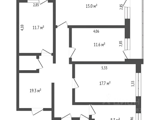 - комната 9,5 м (2,85*3,33).