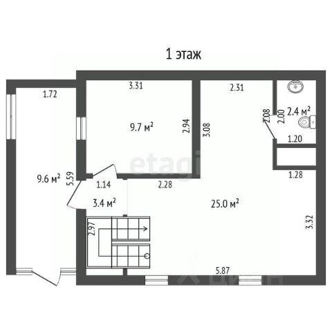 Дом общей площадью 100 квадратных метров с изолированной планировкой , включают кухню-гостиную и 3 спальни.