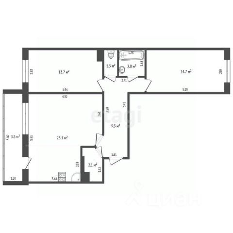 Кухня-гостиная оптимальной площади Ванная комната и дополнительный санузел для комфорта семьи Просторная прихожая с возможностью установки шкафа Эргономичная спальня и детская правильной формы Высота потолка 2,73 м Улучшенная предчистовая отделка