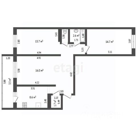 Комнаты изолированные, гостиная 16.6м², спальня 11.8м², санузел раздельный, длинный коридор, так же есть балкон и кладовая.