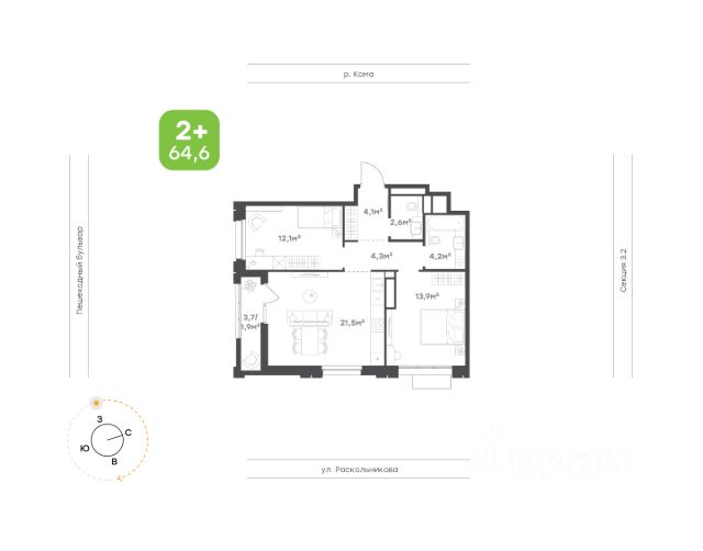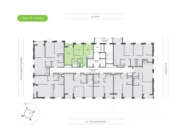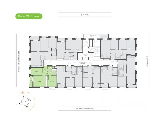 Продаётся 2-комнатная квартира в строящемся доме (дом 69-1-2), срок сдачи: III-кв. 2026, общей площадью 43.57 кв.м., на 25 этаже. Новый жилой дом от застройщика "ГК ПРОФИТ" расположен по адресу: Россия, Республика Татарстан, Набережные Челны, Залесный проспект