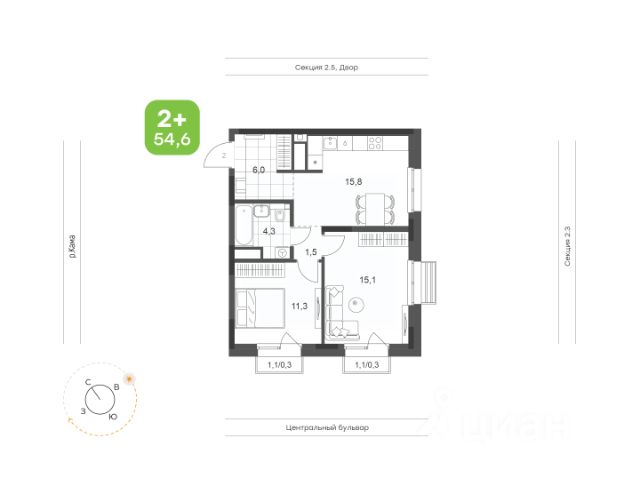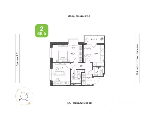 Просторная светлая кухня-гостиная Мастер-спальня с собственным санузлом и нишами для мест хранения Детские комнаты правильной формы, одна с выходом на лоджию Вместительная гардеробная с возможностью организации постирочной Окна на две стороны Высота потолков 2,7м Улучшенная предчистовая отделка