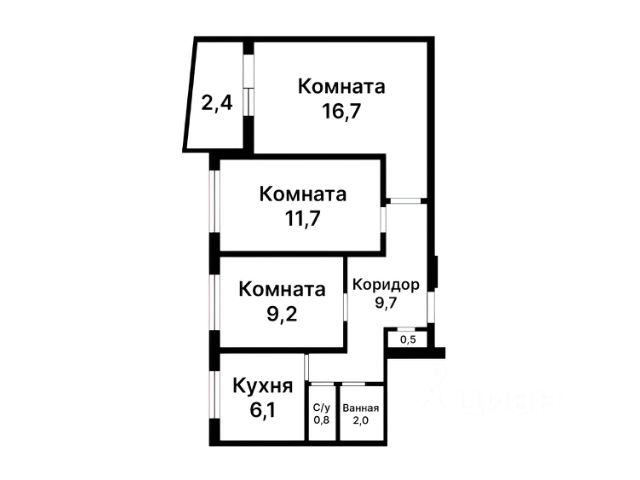 Комнаты изолированные, гостиная 16.6м², спальня 11.8м², санузел раздельный, длинный коридор, так же есть балкон и кладовая.