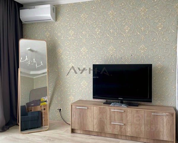В гостиной установлена хорошая мощная сплит система , так же остается большая стенка и диван.