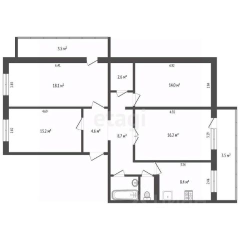 • Общая площадь: 90,9 кв.м. Простор и свобода для каждого члена семьи.