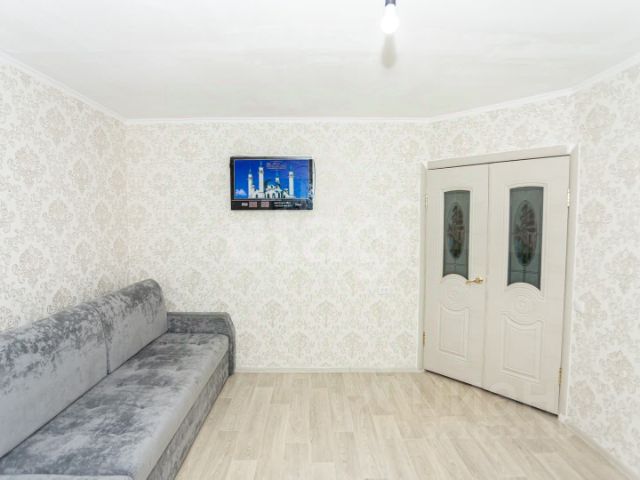 Квартира с косметическим ремонтом от 2009 года, что позволяет сразу въехать и жить. На полу линолеум одного цвета по всей квартире, натяжные потолки со встроенными светильниками, флизелиновые обои, двери цвета шоколад. Имеются глубокие антресоли возле санузла и кухни.