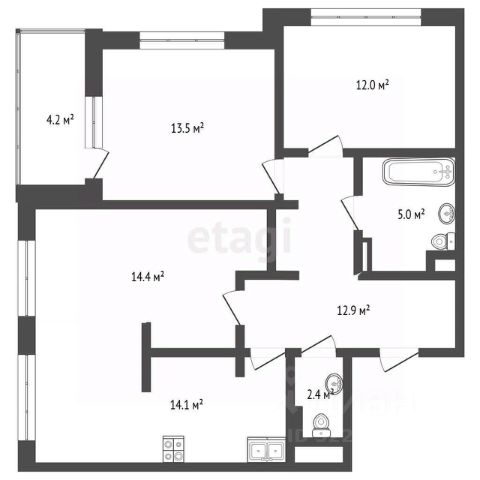 - комната 12,4 м (2,86*4,43)