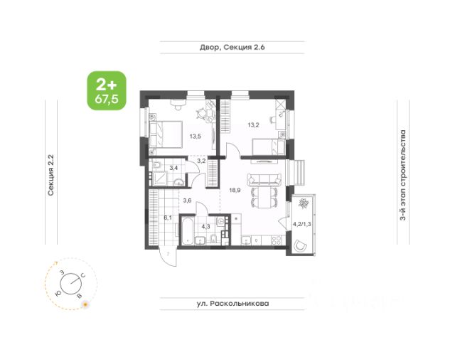 Окна на 2 стороны света Просторная мастер-спальня со своим санузлом Вместительная гардеробная в коридоре Светлая увеличенная кухня-гостиная Комната с выходом на лоджию Высота потолка 2,73 м Улучшенная предчистовая отделка 5 квартир на этаже