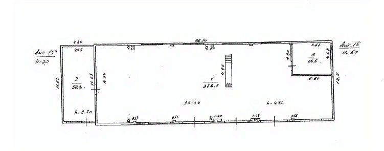 Высота 4,7 м., ворота 4,4 в количестве 3 шт., яма 5 на 0,9, общая площадка 900 кв.м. с соседним гаражом, подсобные 50,3 (высота 2,7 м) и 26,5 (высота 5 м.)