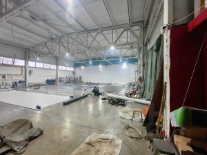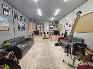 Внутри бокса подсобные помещения: раздевалка с комнатой приема пищи, офис.