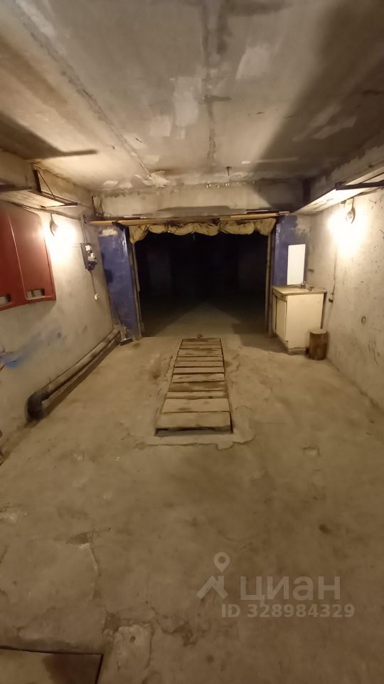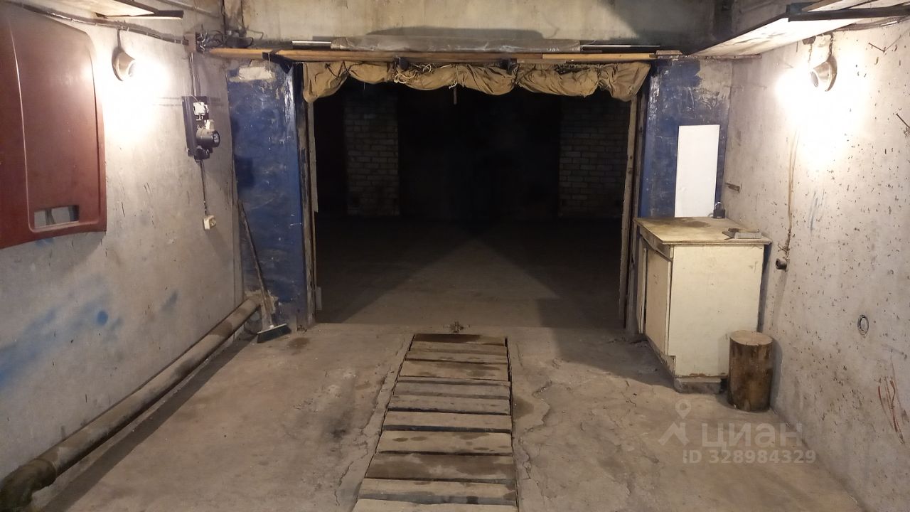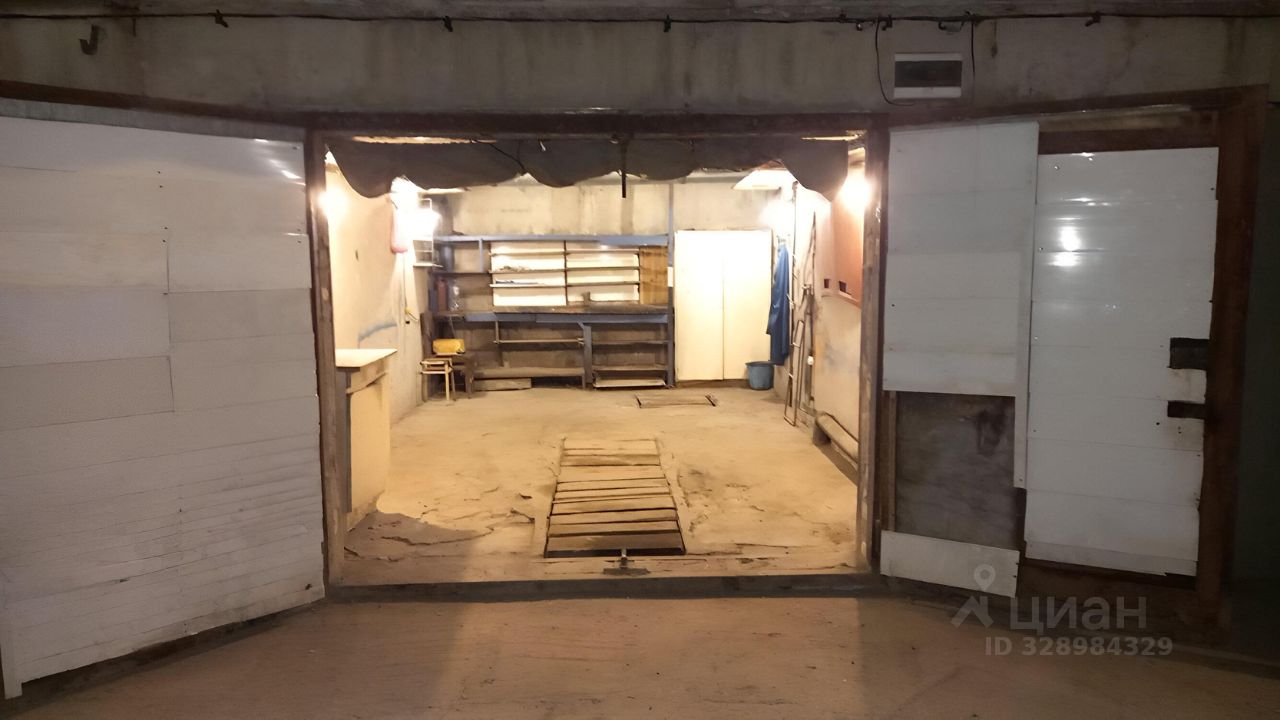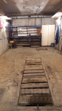 Есть смотровая яма, полки, погреб.