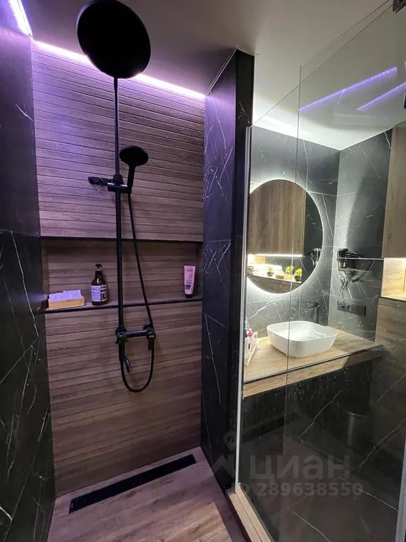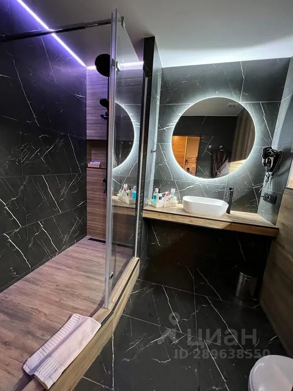 В ванной комнате современная душевая кабина, новая сантехника, фен, бойлер, всегда горячая вода, средства гигиены, махровые полотенца большие и маленькие, мягкие уютные халаты.
