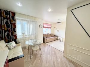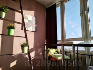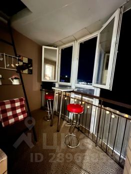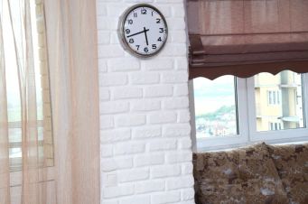 Уютная квартира студия в монолитном доме бизнес класса для состоятельных граждан, привыкших к комфорту. Вид с высоты птичьего полёта на город с уютным балконом, столиком и барными стульями.