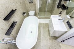 Кухня оборудована встроенным гарнитуром и всей необходимой техникой: варочная панель, духовой шкаф, посудомоечная машина, холодильник. В гостиной размещён мягкий диван, телевизор, журнальный столик и система хранения. В спальнях установлены удобные кровати, шкафы для одежды и прикроватные тумбочки.