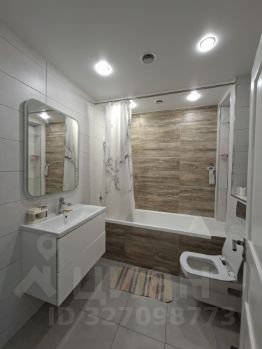 Санузел совмещенный, оформлен современной плиткой, есть стиральная машина. В прихожей — просторные шкафы для верхней одежды.