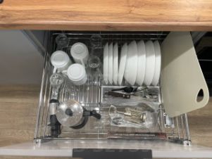 Кухонная зона воплощает собой современный подход к организации пространства. Она оснащена всей необходимой бытовой техникой: плитой, холодильником, духовым шкафом, а также полным набором посуды и кухонных принадлежностей. Это позволит вам без труда готовить любимые блюда, чувствуя себя как дома. Ванная комната выдержана в современном стиле и оборудована всем необходимым для ухода за собой.