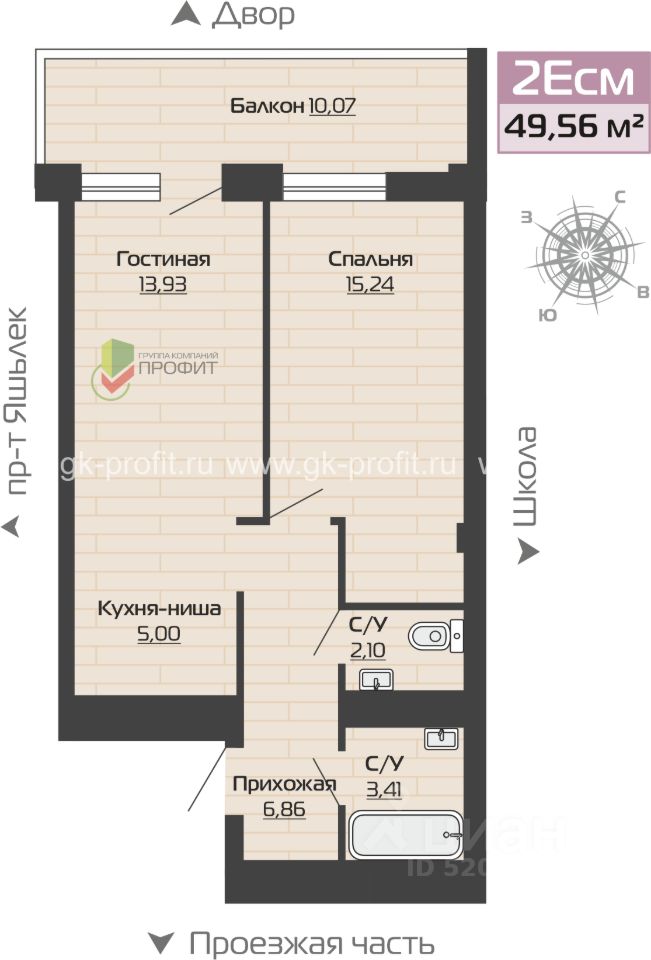 Продаётся 2-комнатная квартира в строящемся доме (дом 69-1-2), срок сдачи: III-кв. 2026, общей площадью 49.56 кв.м., на 17 этаже. Новый жилой дом от застройщика "ГК ПРОФИТ" расположен по адресу: Россия, Республика Татарстан, Набережные Челны, Залесный проспект