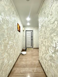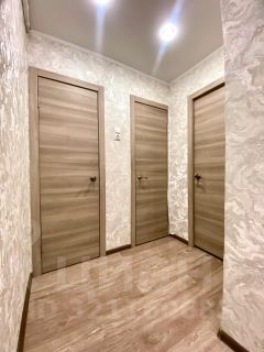 Евро ремонт, благодаря которому новым владельцам не придется тратить время и средства на обновление интерьера: поменяны линолеум, обои, пластиковые окна, натяжные потолки, межкомнатные двери и новая светлая входная дверь.