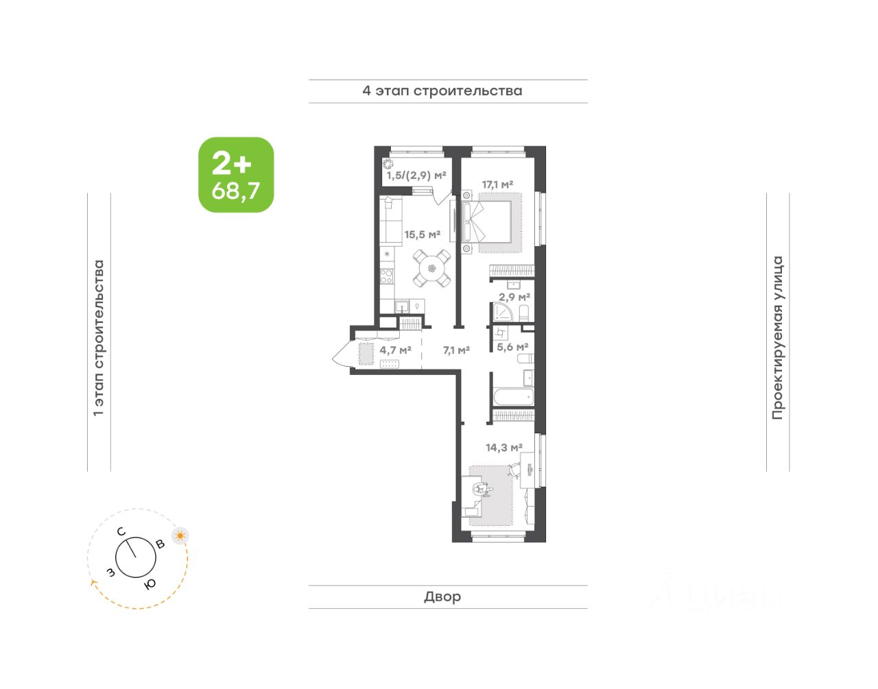 68,7 м²