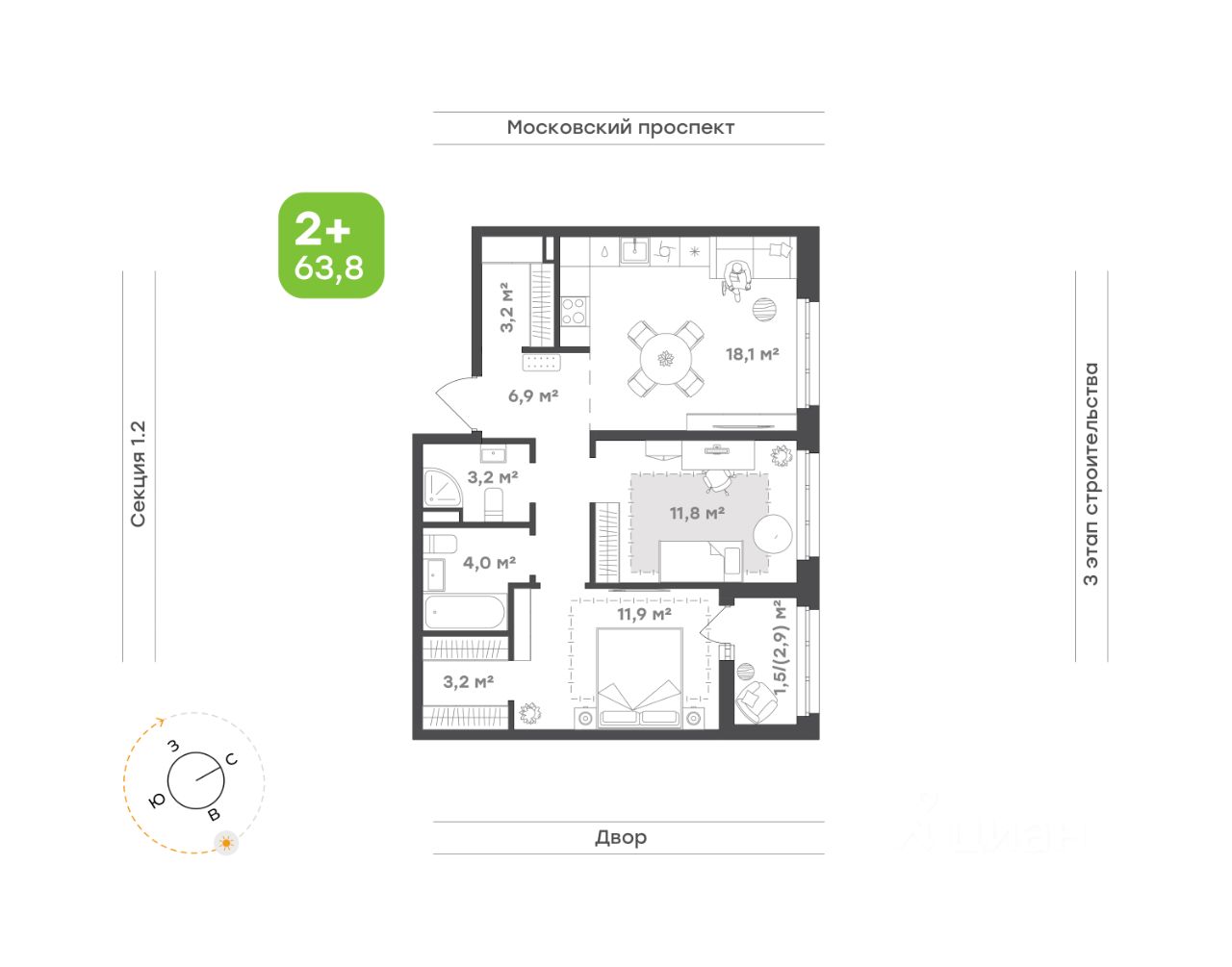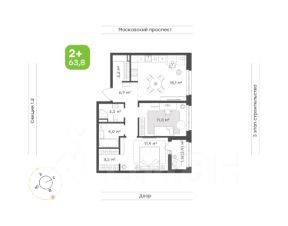 63,8 м²