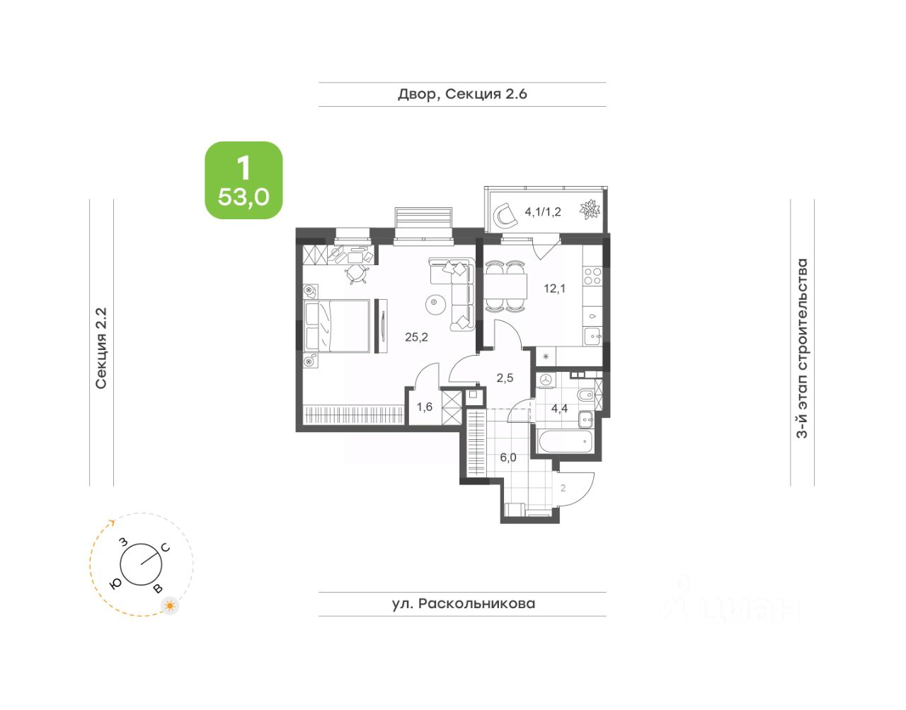 53 м²
