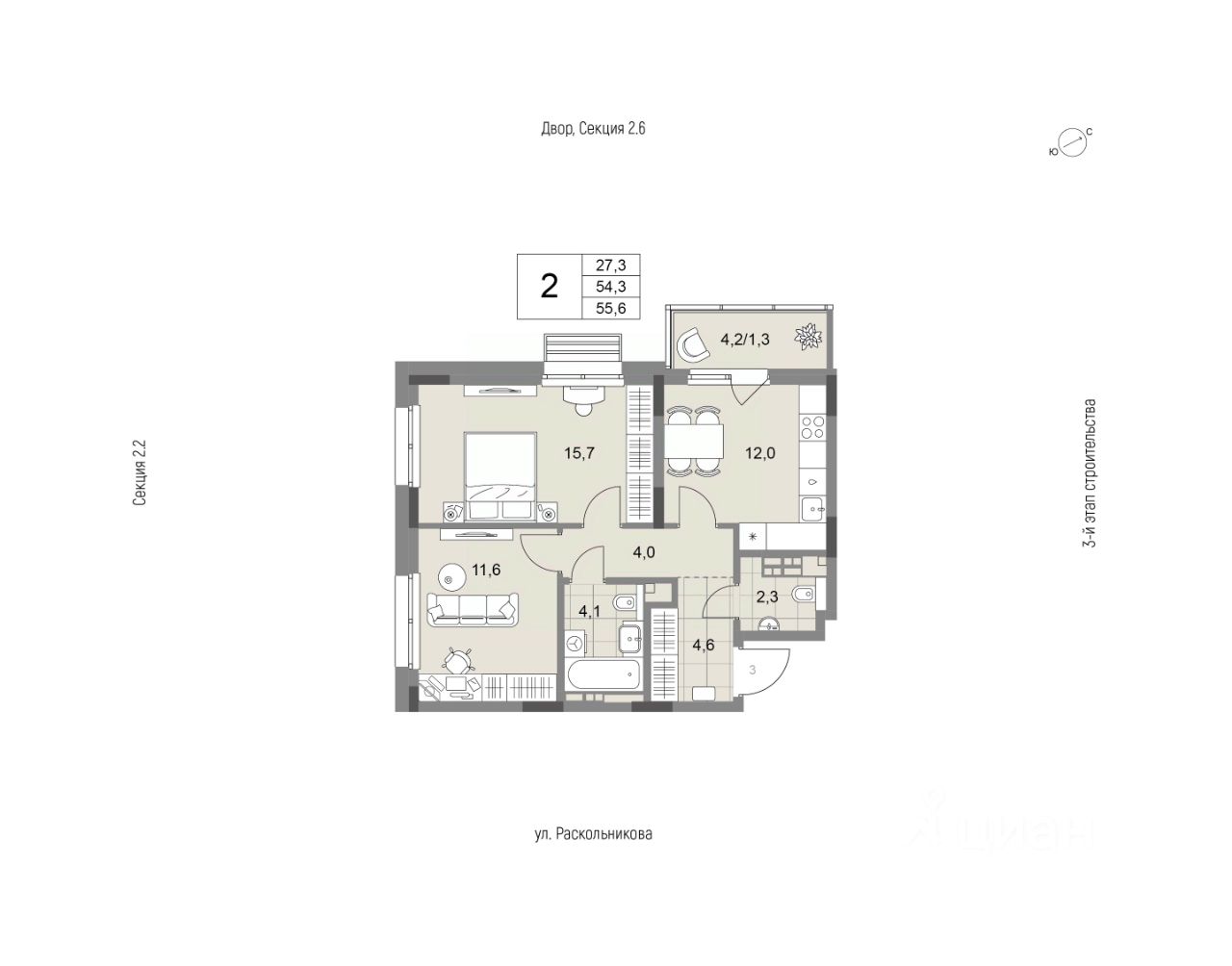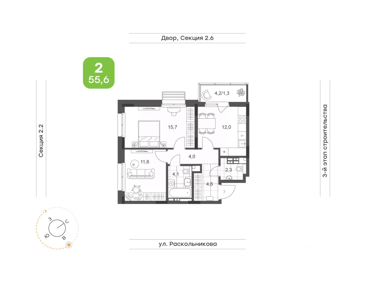 Уютная квартира на 2 стороны света