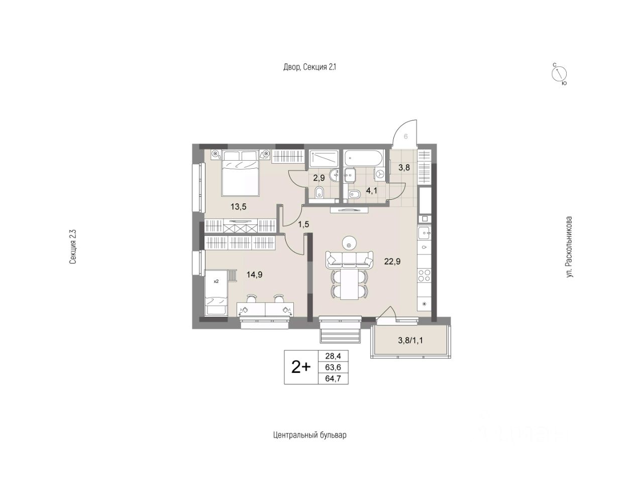 Квартира на 2 стороны света