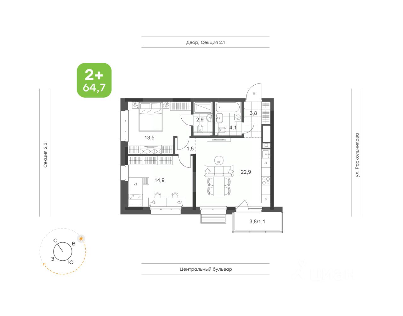 Квартира на 2 стороны света