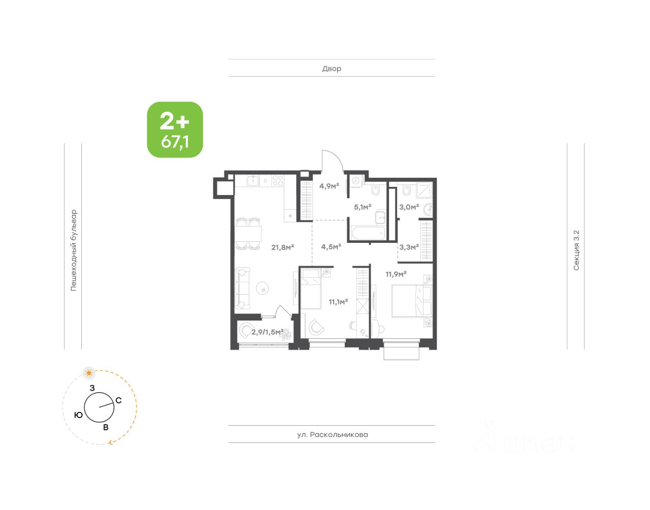 67,1 м²